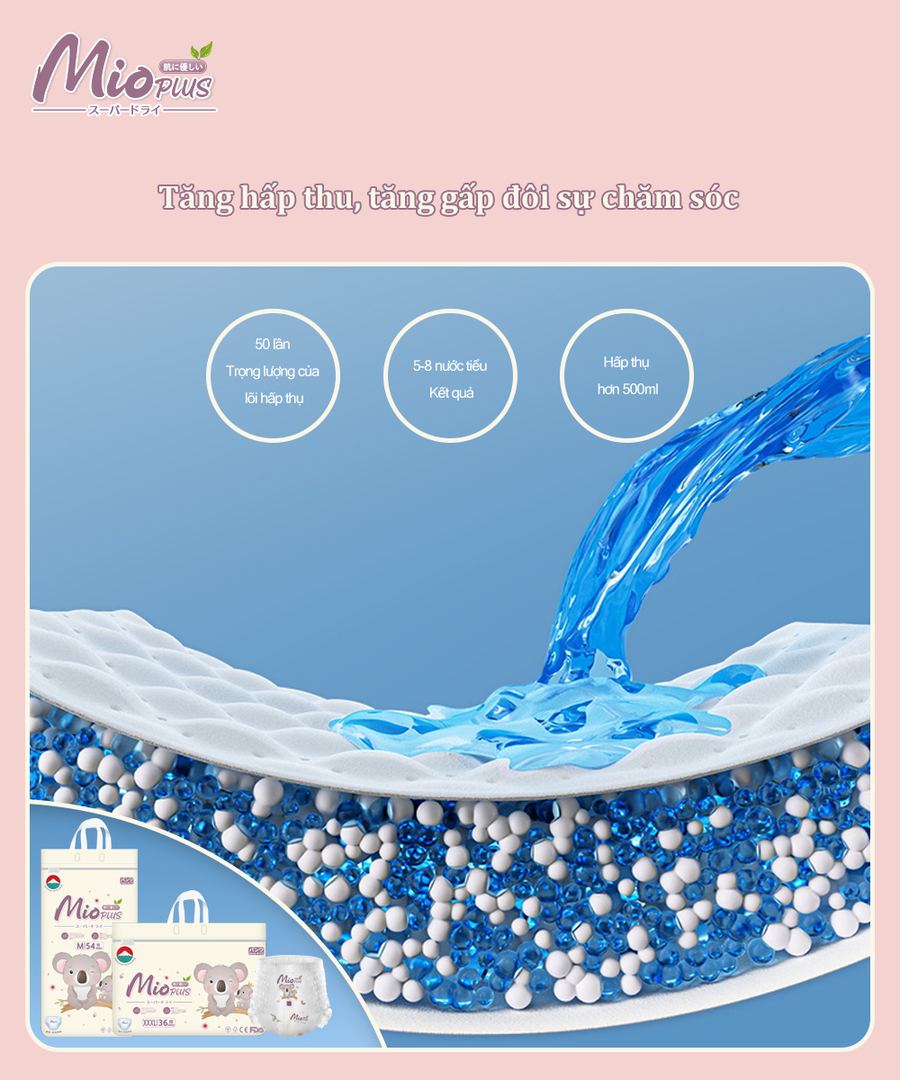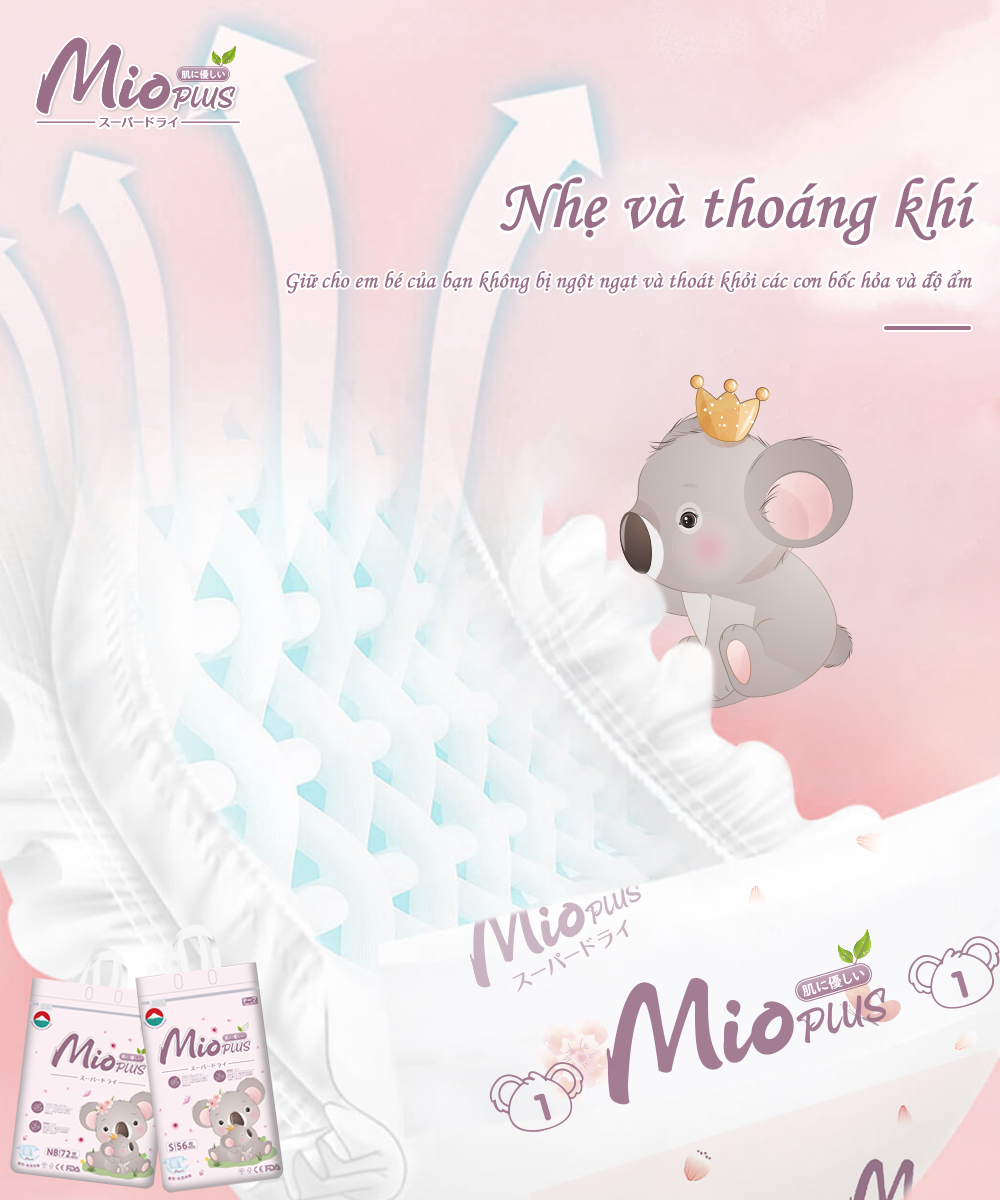 - Độ dẫn bề mặt cao thúc đẩy sự hấp thụ nước tiểu lưu thông không khí, cung cấp cho bé đủ không gian thoả mái không bị cảm giác oi bức khó chịu hay thấm ngược Bổ sung thêm tinh dầu hoa anh đào quý giá làm giảm ức chế của vi khuẩn nhẹ nhàng làm dịu,thư giãn giúp da bé tránh xa tình trạng hăm đỏ, nuôi dưỡng, tránh tình trạng phát ban trên da bé.